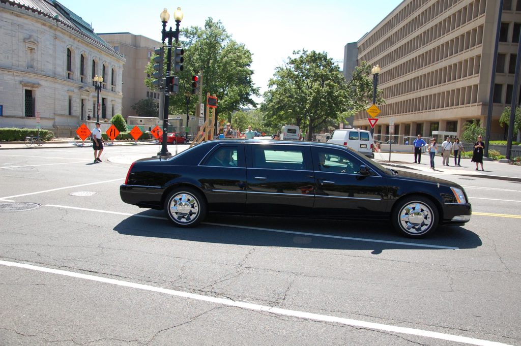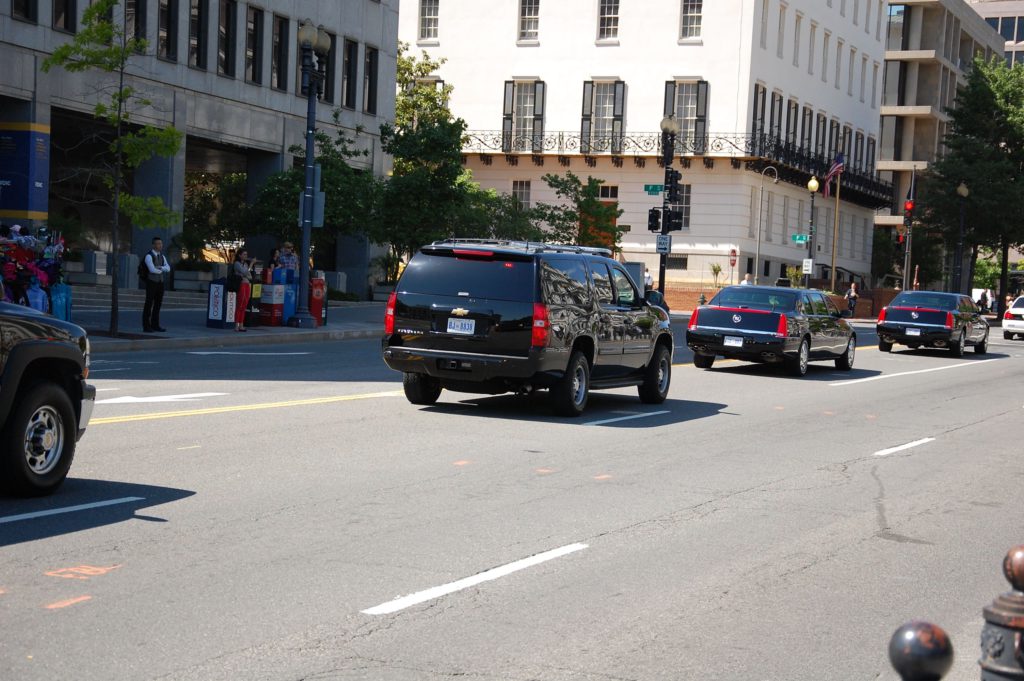 najednou se z brány vyřítí kolona aut a mezi nimi i dvě naptosto, ale opravdu naprosto stejné limuzíny… dokonce mejí i stejné SPZ :)) a celá kolona míří do centra DC…