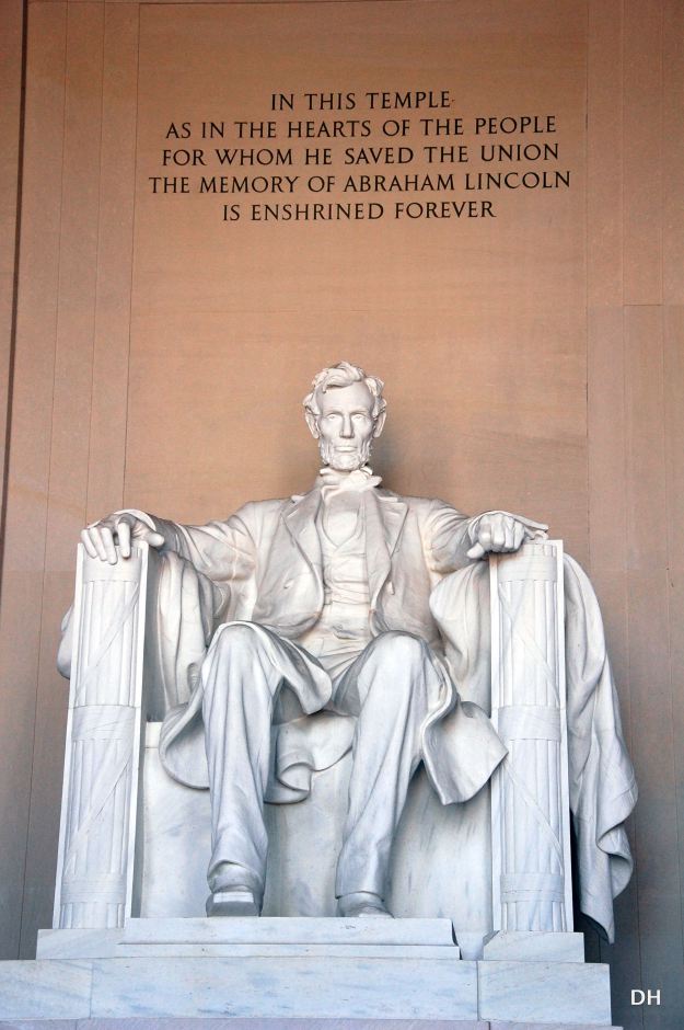 na to všechno tu dohlíží ze svého památníku Abraham Lincoln…